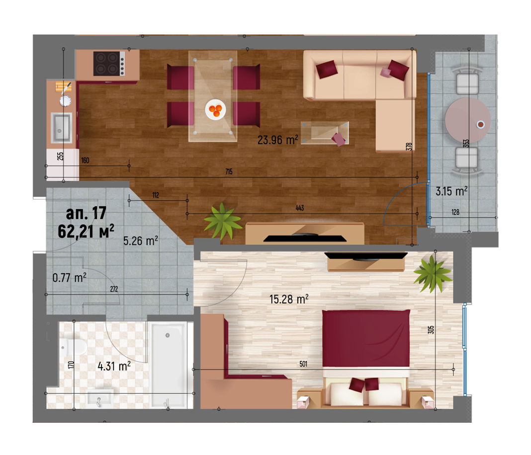 63 апартамента, от които: